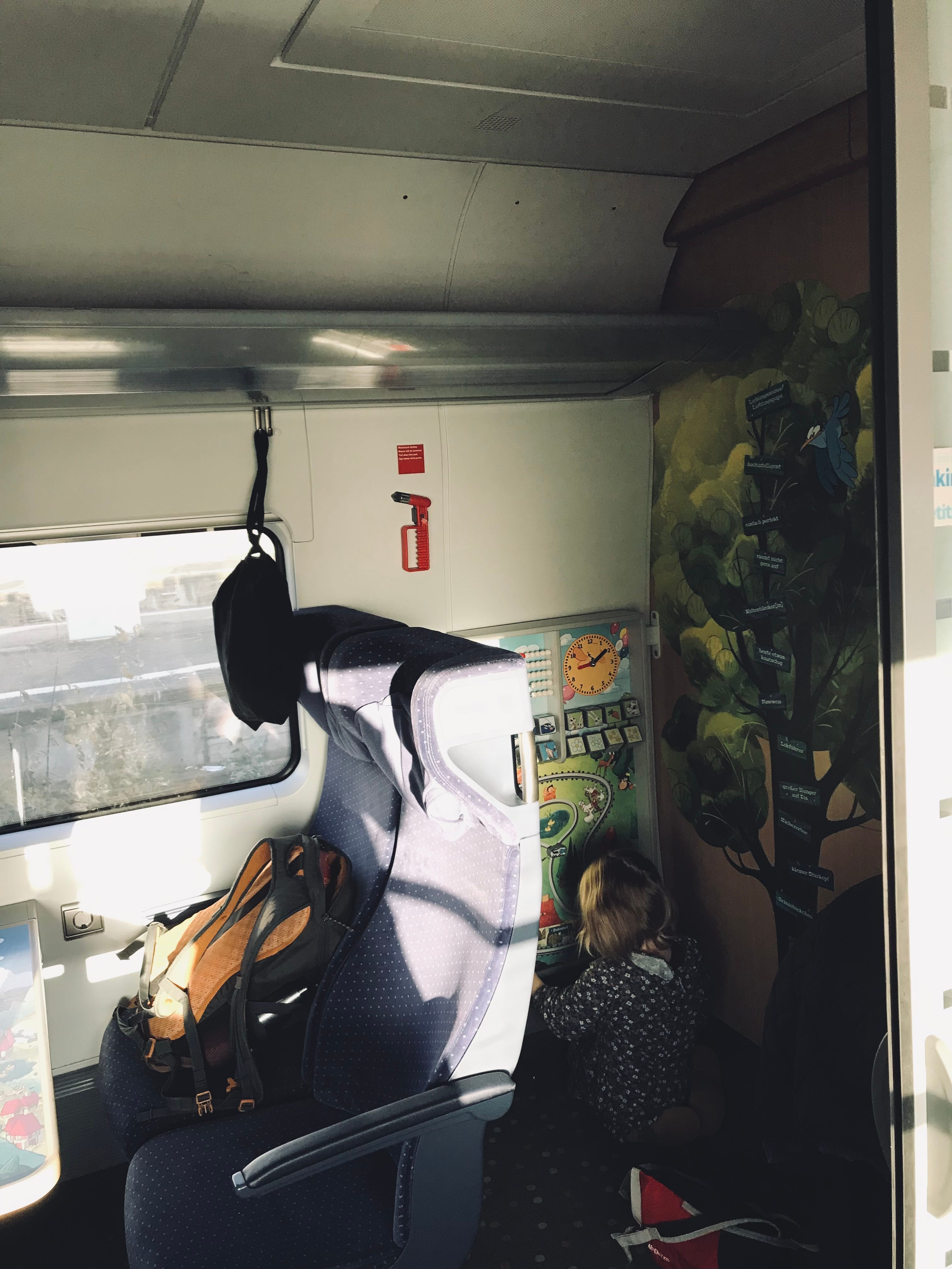 In the face of the evergreen complaint of children in transportation, here is one example of a deliberately prepared environment. In German long distance trains, two types of family seats are available. The first is a toddler area: