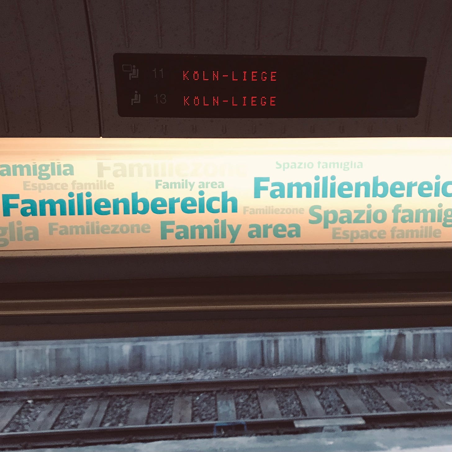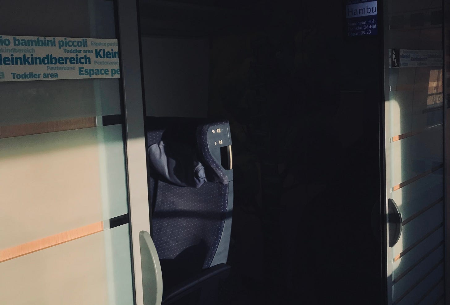 This is an institutional reminder that children belong here, to any childless traveler who might sit nearby. Sometimes all the seats in the quiet car were booked and that’s where you unexpectedly have to sit! But that’s the expectation here.